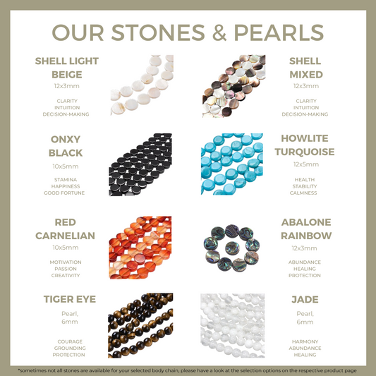 Our accessories include beautiful necklaces, earrings, bracelets or ankle chains.
